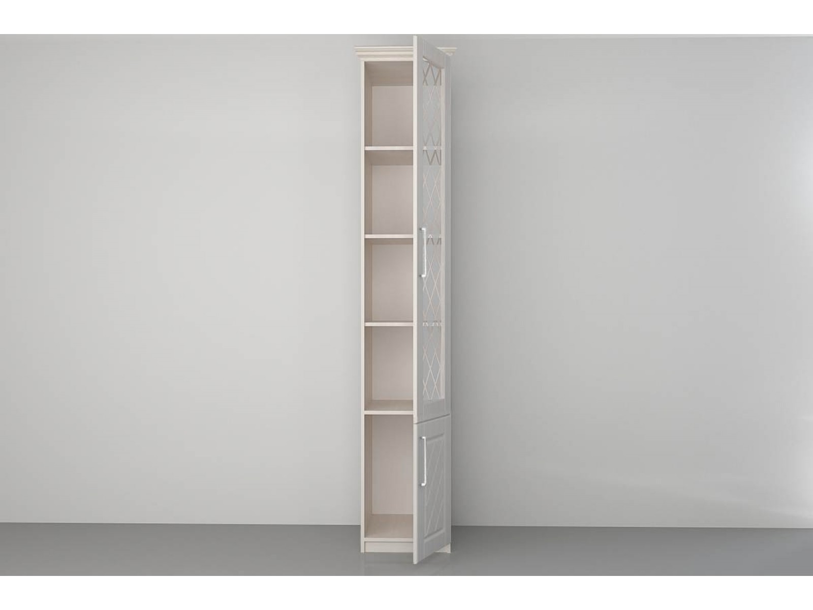Пенал с закрытой нишей - компактный, практичный и функциональный предмет мебели, использование которого позволяет сэкономить место в комнате и при этом поместить немалое количество вещей. Конструкция с глухой и стеклянной дверцей. Внутри полки для хранения.
