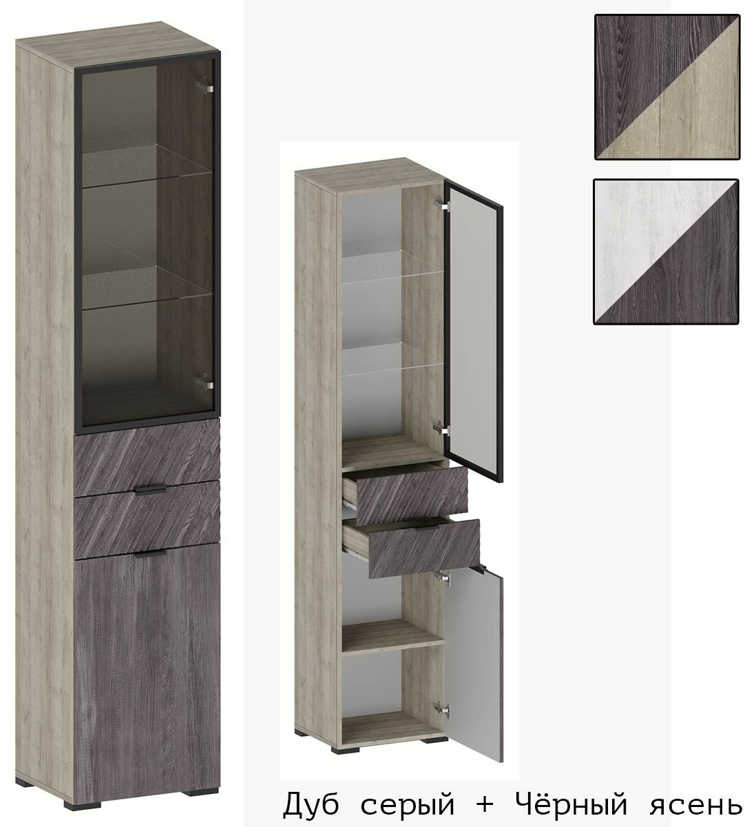 -Корпус Дуб серый + Фасад Чёрный ясень,