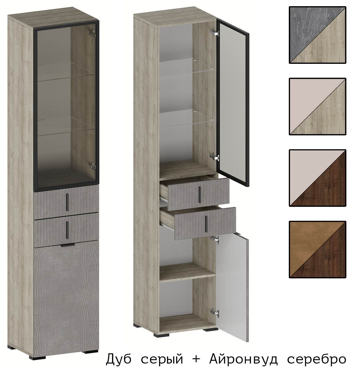 Корпус Дуб серый + Фасад Айронвуд серебро