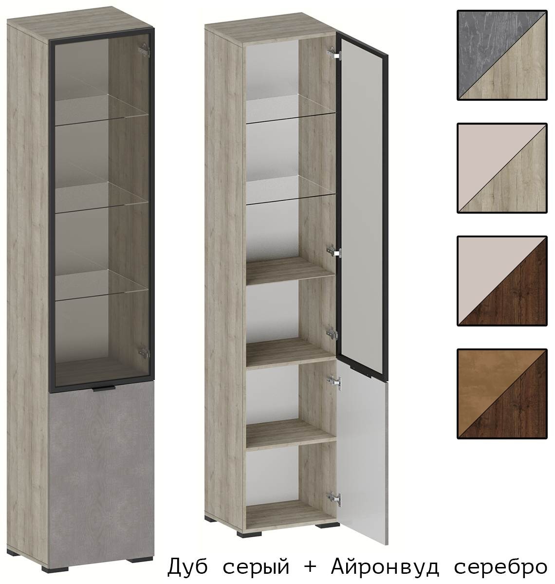 Корпус Дуб серый + Фасад Айронвуд серебро