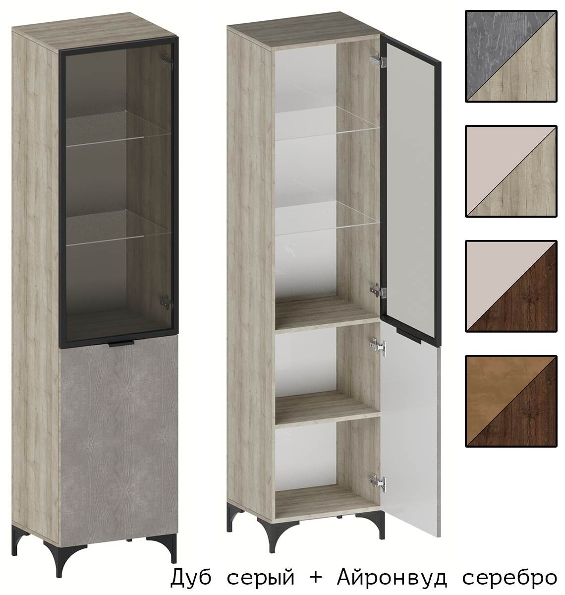 Корпус Дуб серый + Фасад Айронвуд серебро