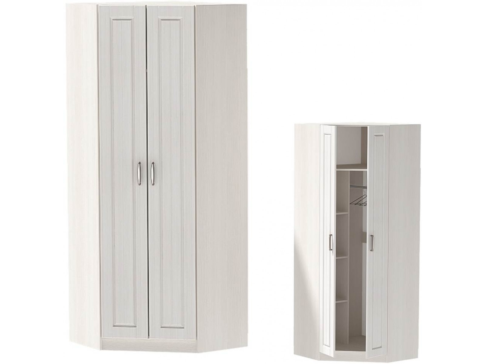 Угловой шкаф позволит наиболее эффективно использовать полезное пространство комнаты, не перегружая интерьер. Он практичный, функциональный и очень вместительный. За распашными дверями находятся: отделение с тремя полками для белья, антресольная полка и металлическая штанга для одежды.