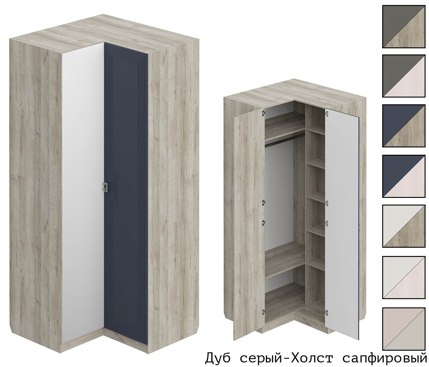 Корпус Дуб серый + Фасад Холст сапфировый