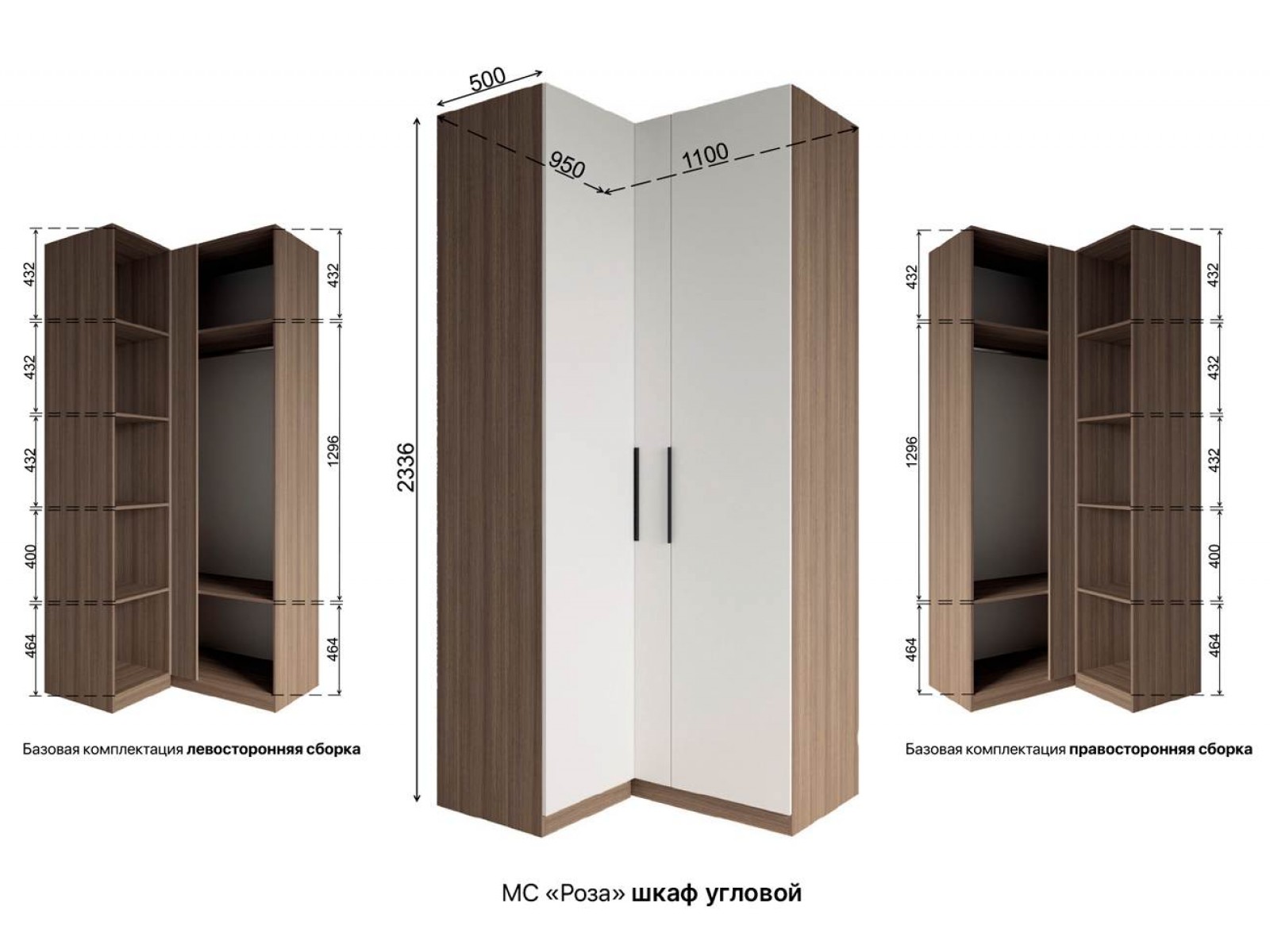 Угловой шкаф имеет универсальную сборку, может быть собран как на правую сторону, так и на левую.