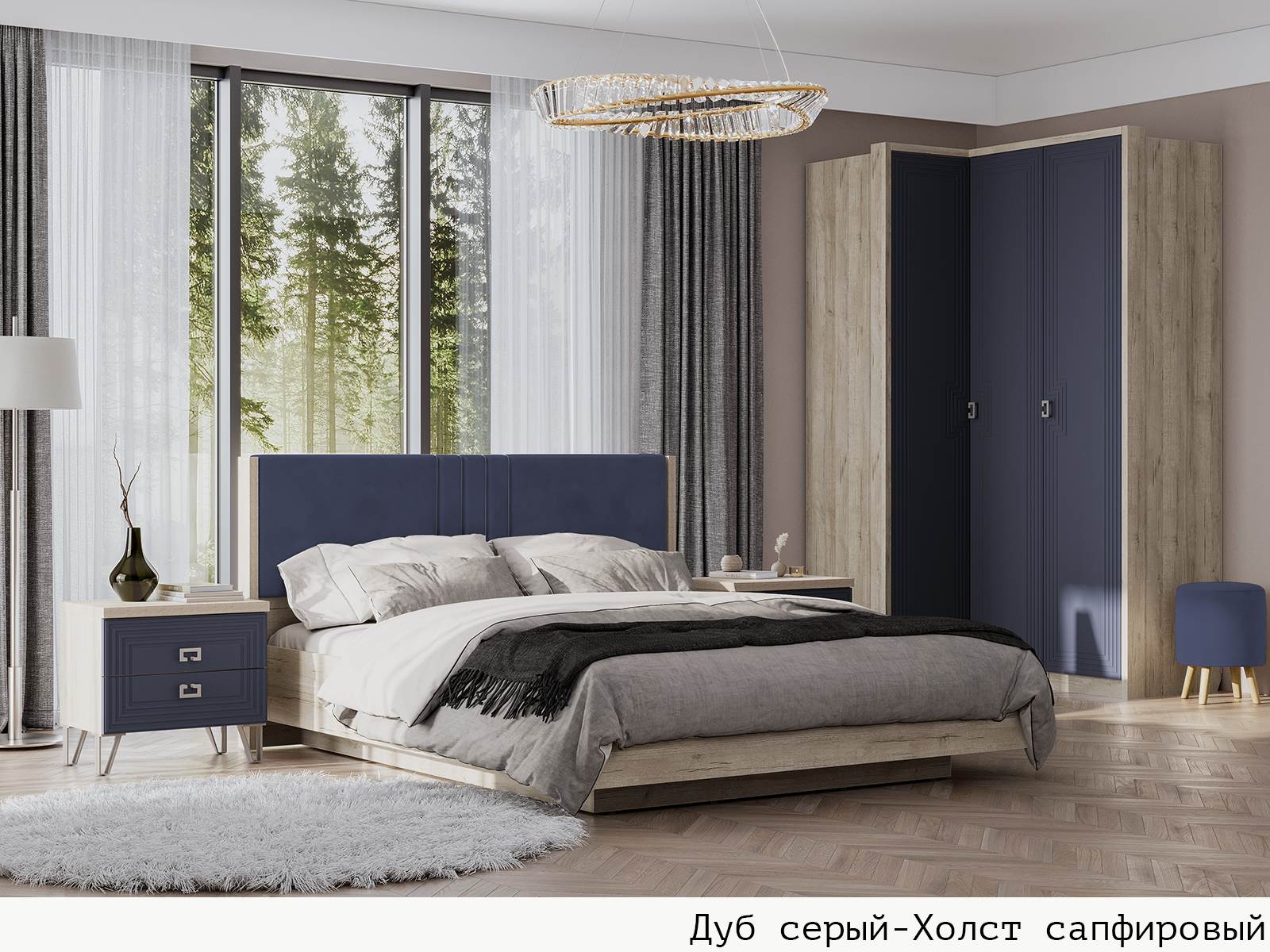 Корпус Дуб серый + Фасад Холст сапфировый