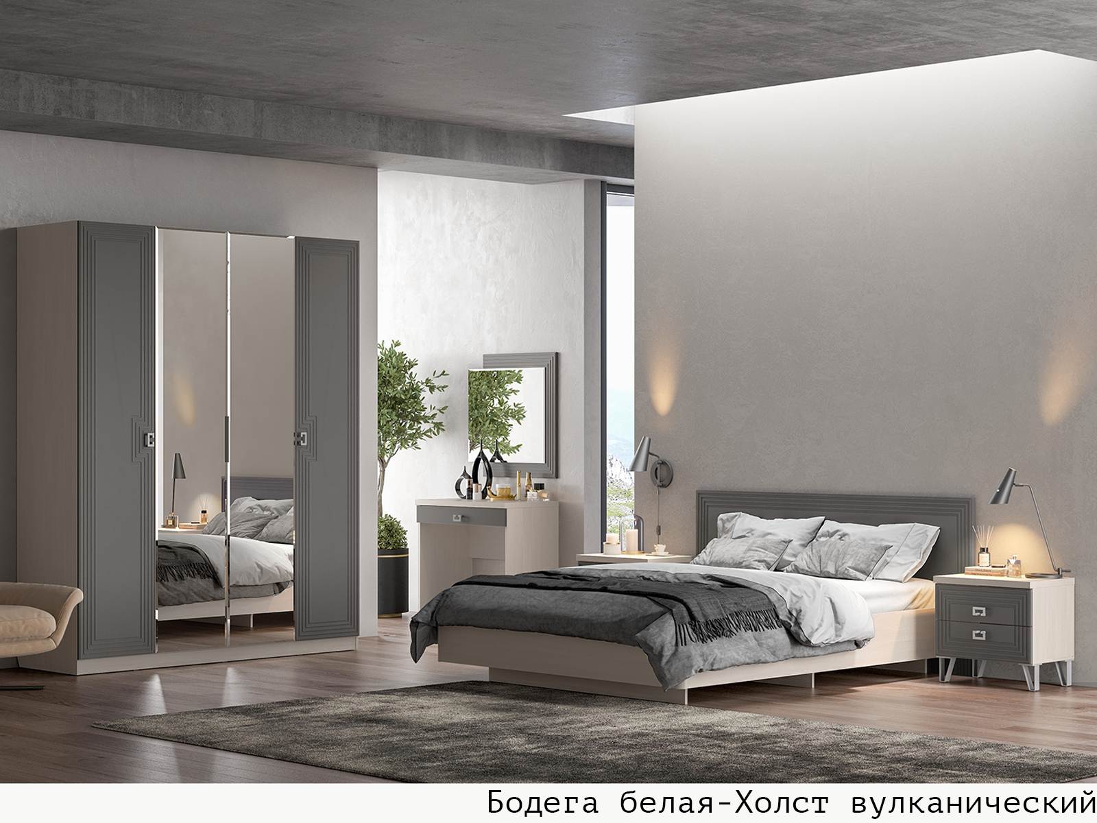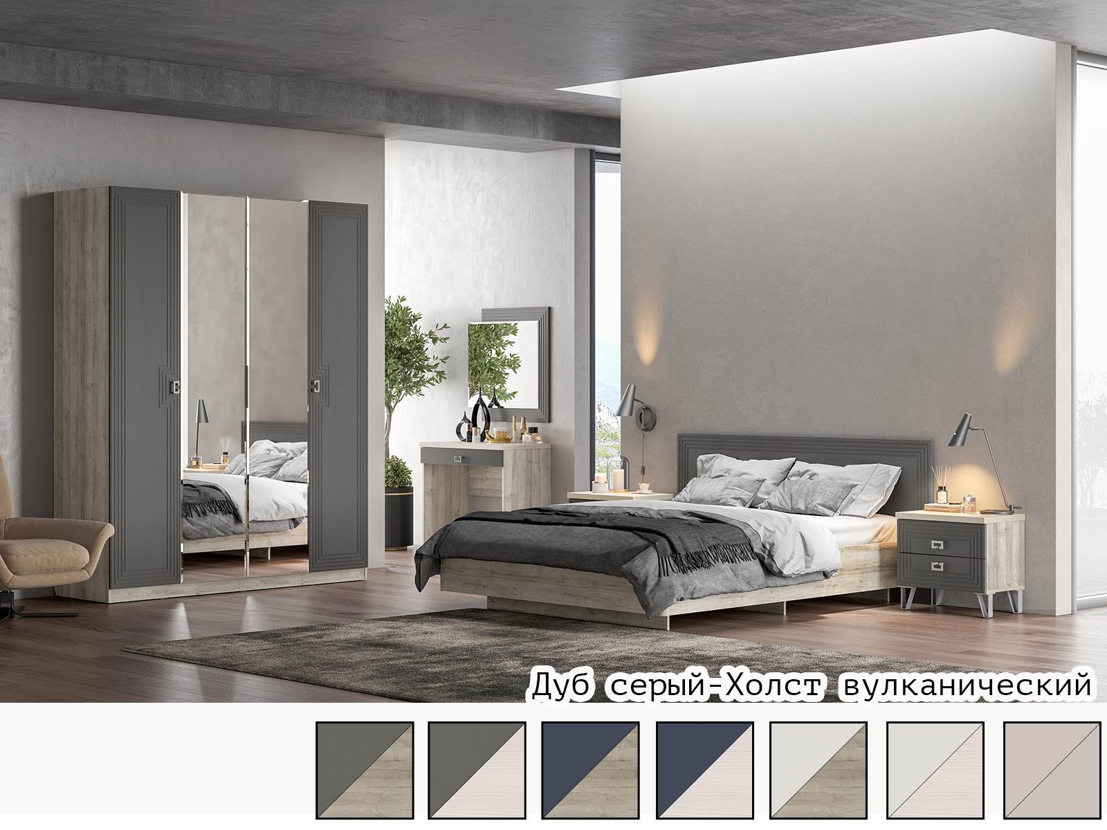 Корпус Дуб серый + Фасад Холст вулканический