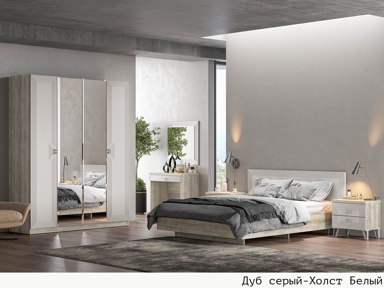 Корпус Дуб серый + Фасад Холст белый