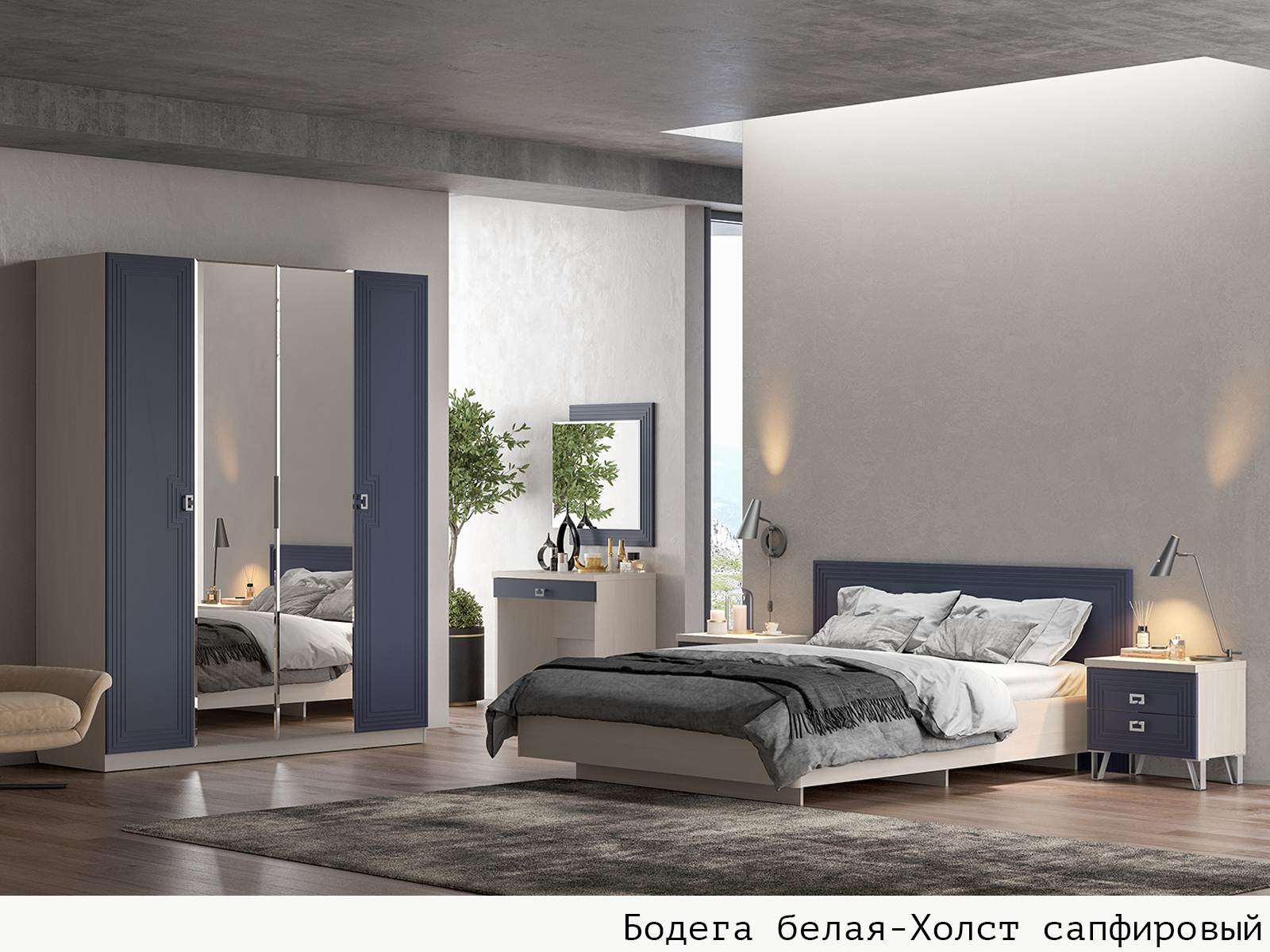 Корпус Бодега белая + Фасад Холст сапфировый