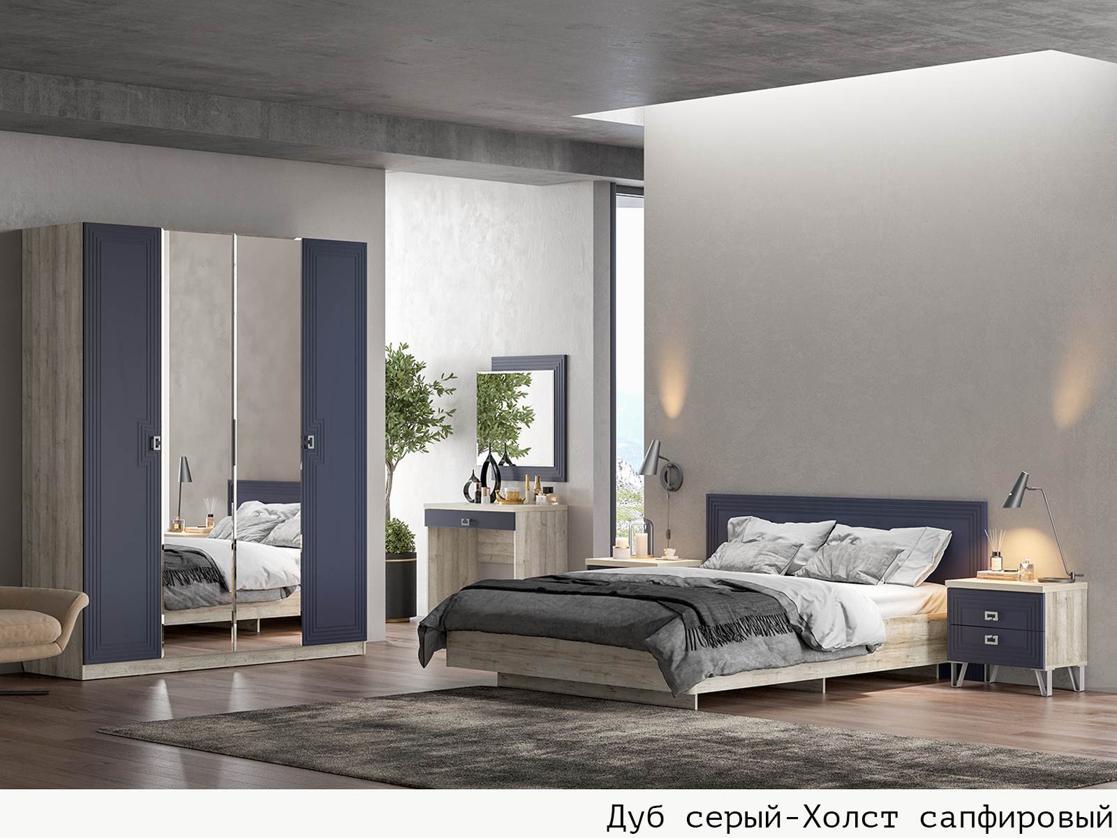 Корпус Дуб серый + Фасад Холст сапфировый