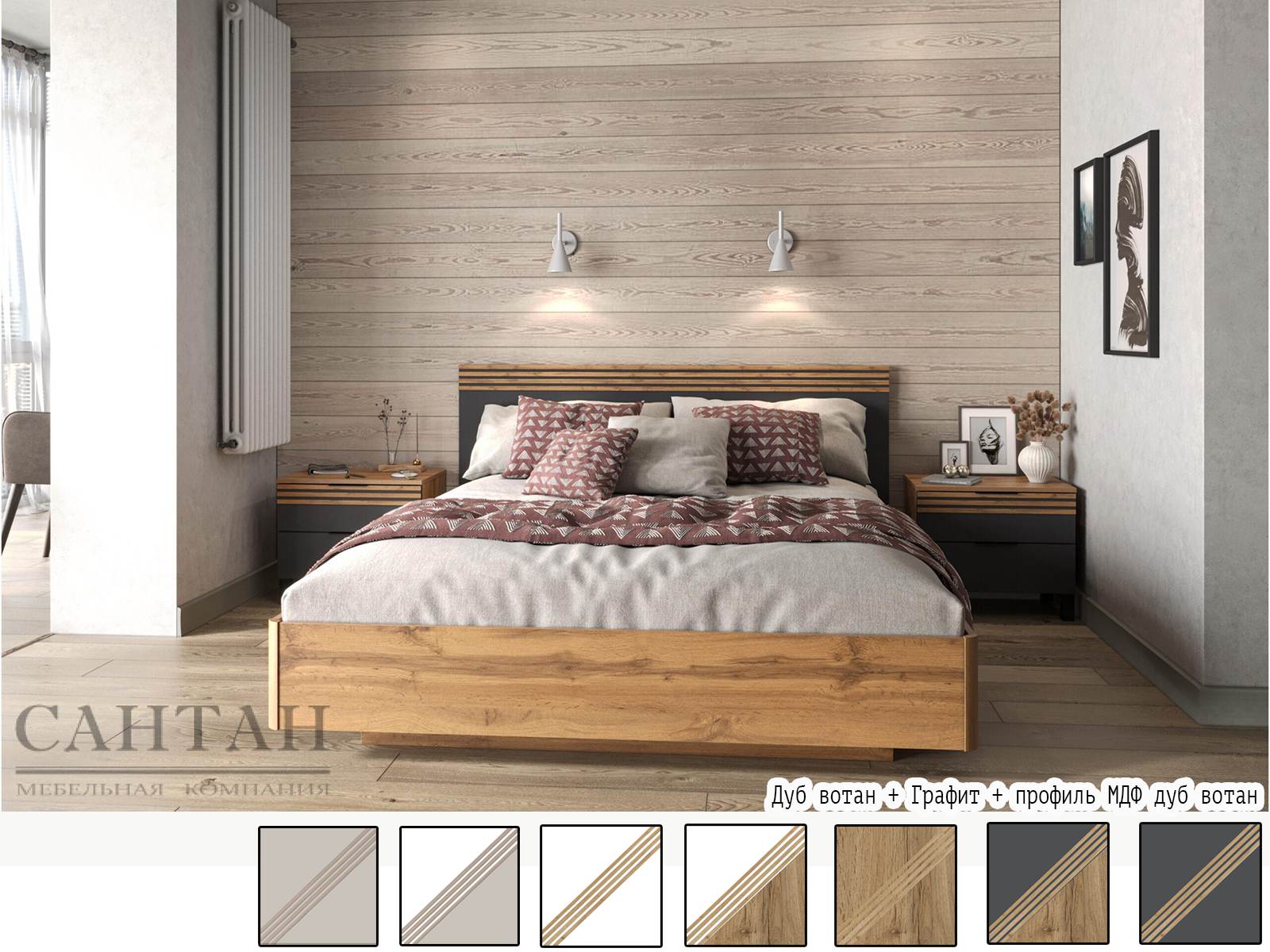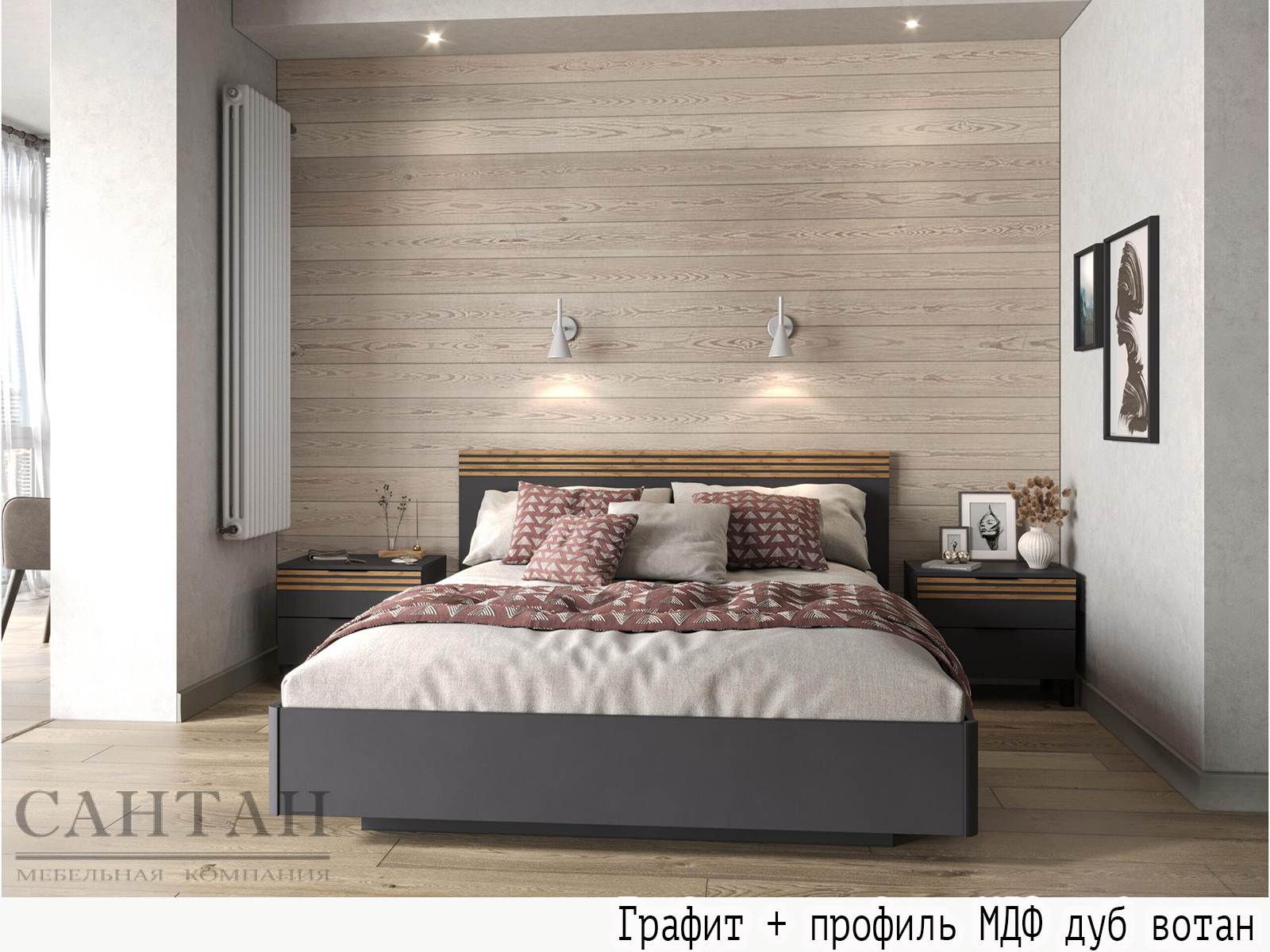 Вариант 4 Корпус ЛДСП Дуб Вотан + фасад ЛДСП Графит/ профиль МДФ Дуб Вотан