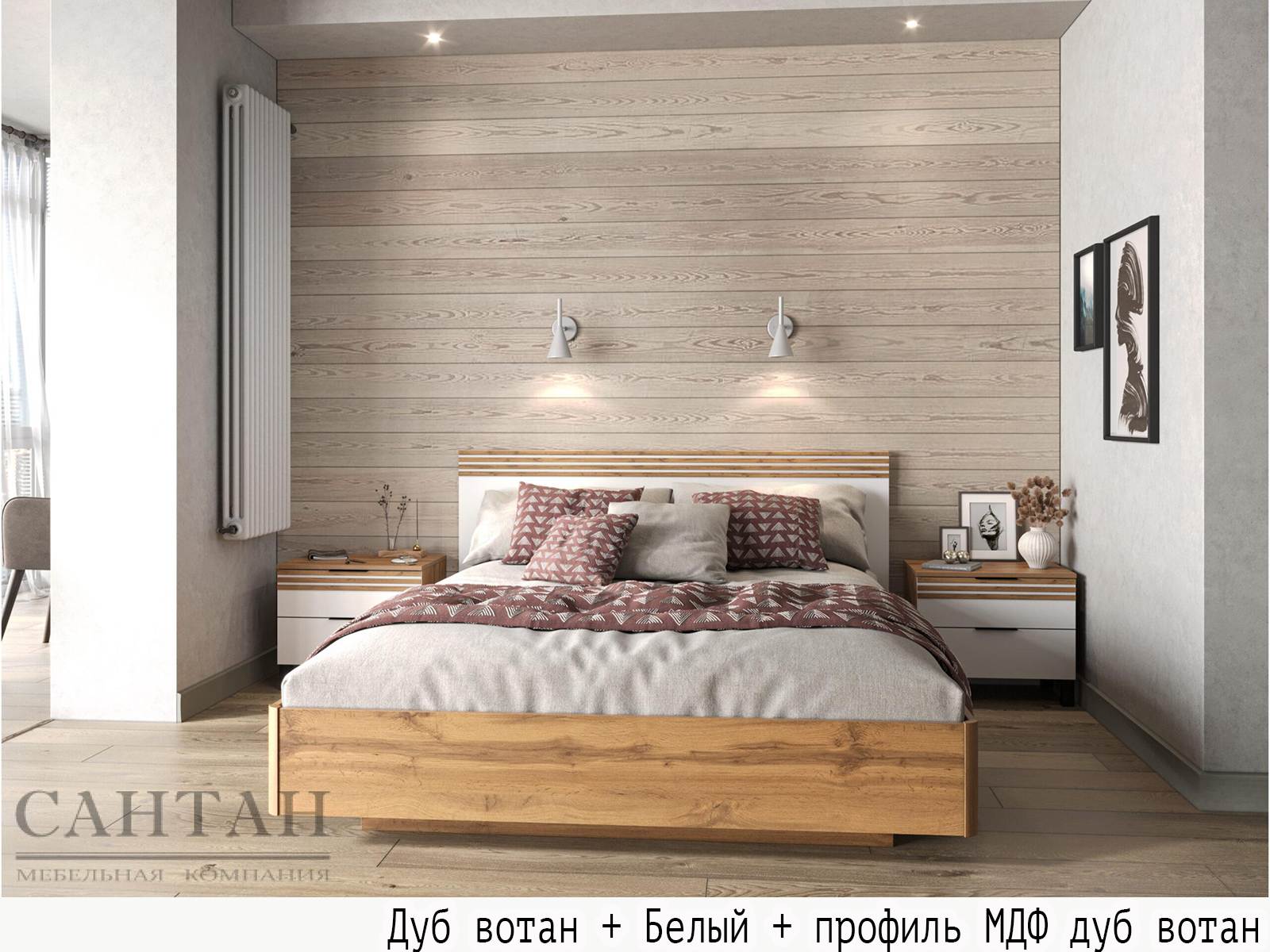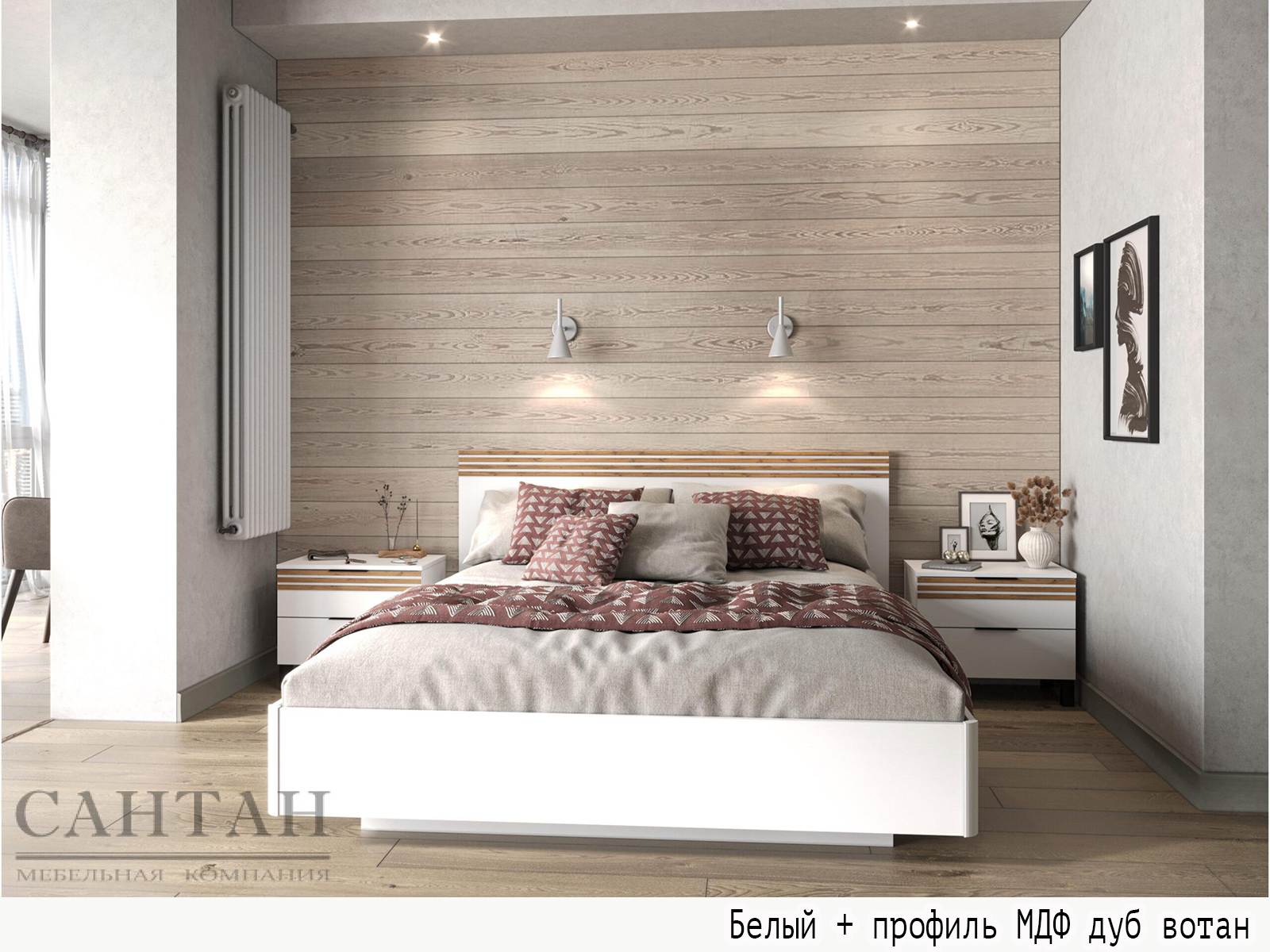 Вариант 3 Корпус ЛДСП Дуб Вотан + фасад ЛДСП Белый/ профиль МДФ Дуб Вотан