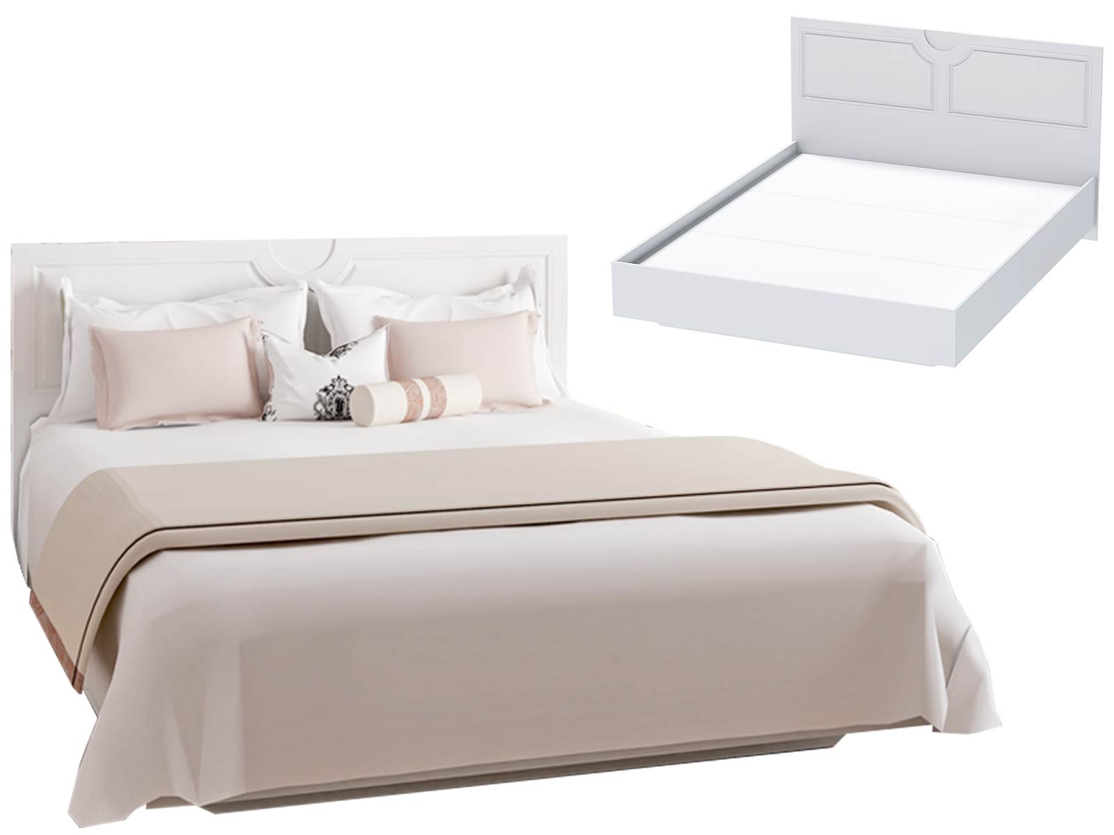 Кровать 1,6 арт.031-М1 (ЛДСП) - Белый (ЛН) + Кровать 1,6 арт. 031 (МДФ) - Бланж Р-811 (Фасад НИКА)