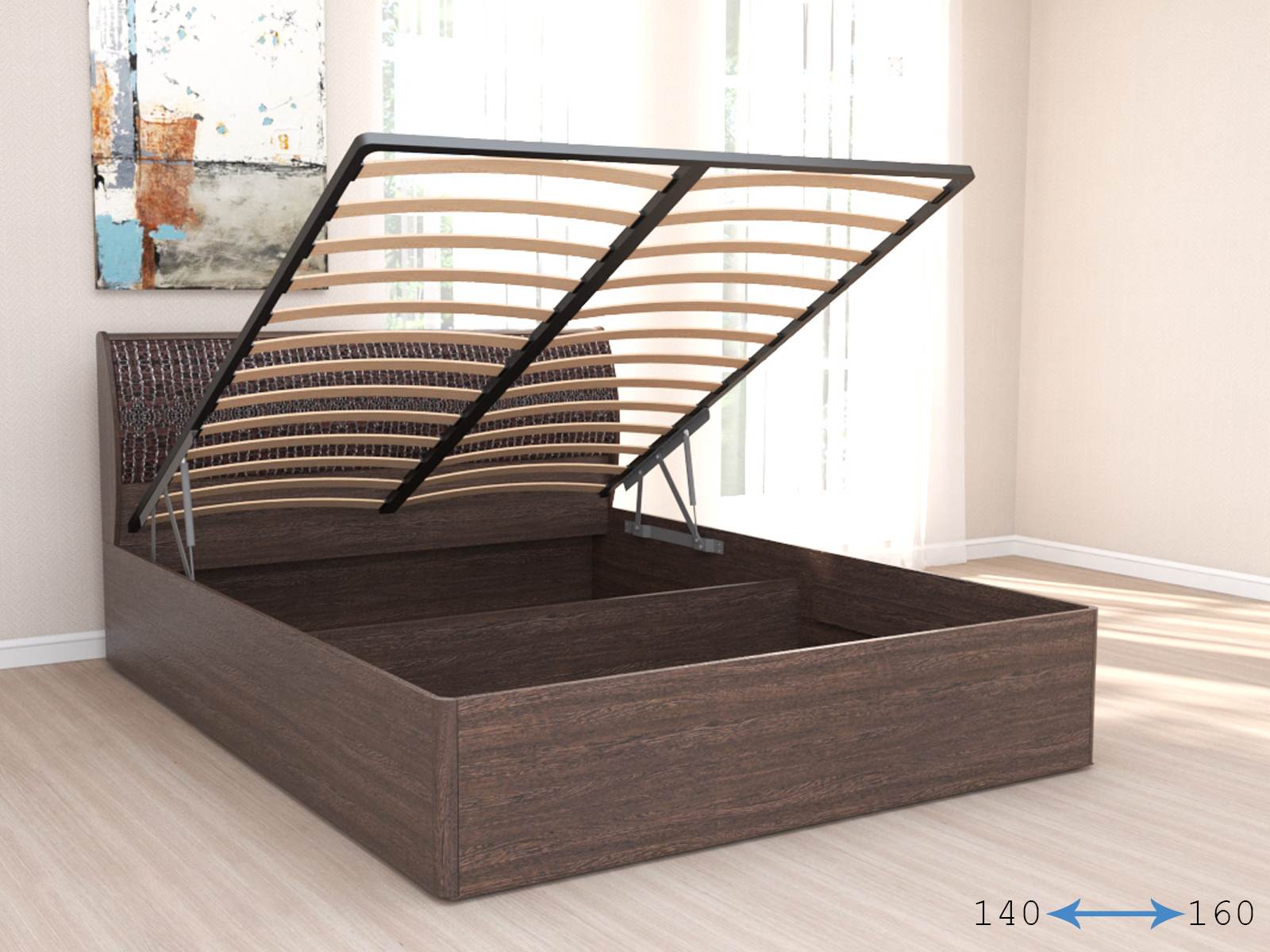 Главная » Спальни » Кровати » Кэт-4 Кровать арт.033_М1 двуспальная с подъёмным механизмом, Венге + Кайман тёмный [Кэт-4]