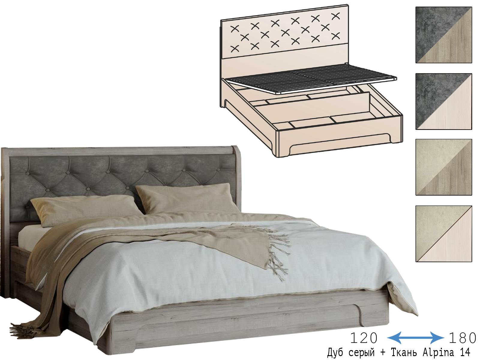 Двуспальная:С мягким изголовьем:С подъёмным механизмом |