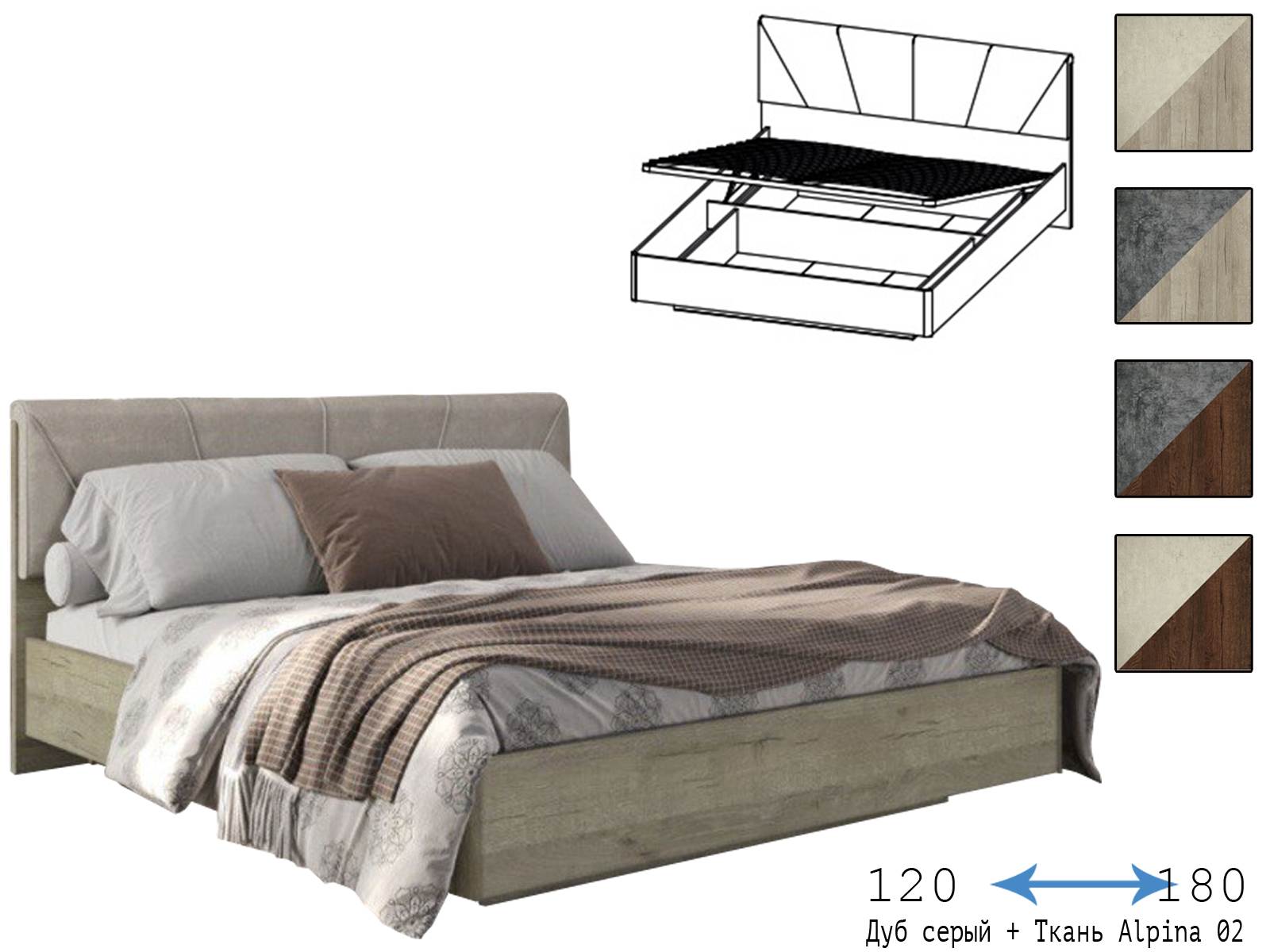 Двуспальная:С мягким изголовьем:С подъёмным механизмом |