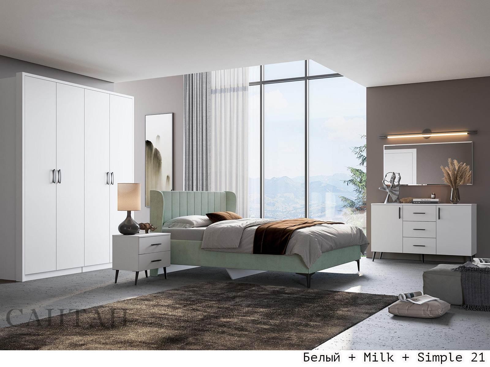 В проекте Юми много жизни, природных красок, он покоряет своими линиями и цветом. Белый, зелёные оттенки мебели придают комнате нежность и романтику, а формы и поверхности теплоту и ощущение природного уюта. Нескучный, солнечный и загадочный интерьер обеспечен. В спальне с такой мебелью становится тепло, уютно, появляется чувство спокойствия и расслабления.