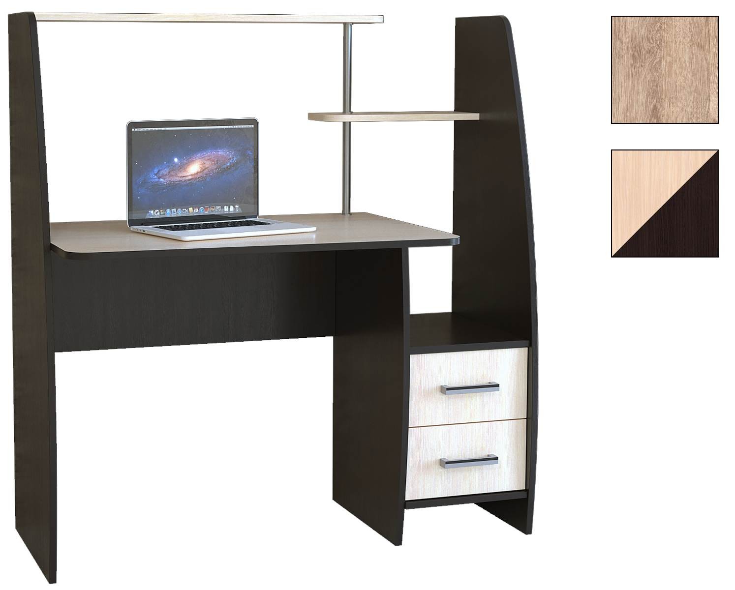 Небольшой компьютерный стол Левый с полками и ящиками.