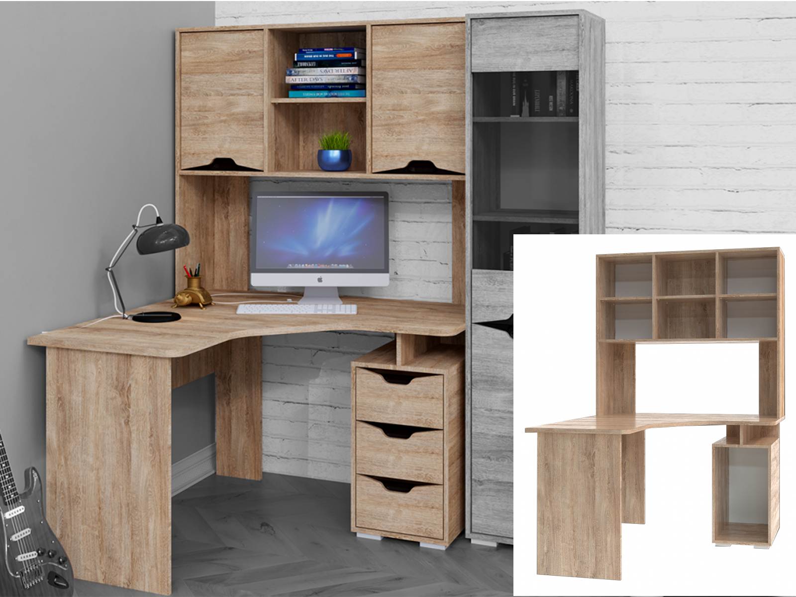 Компьютерный угловой стол КЛ-1.3 (корпус), Дуб Баррик + фасад Версаль-5, Дуб Баррик