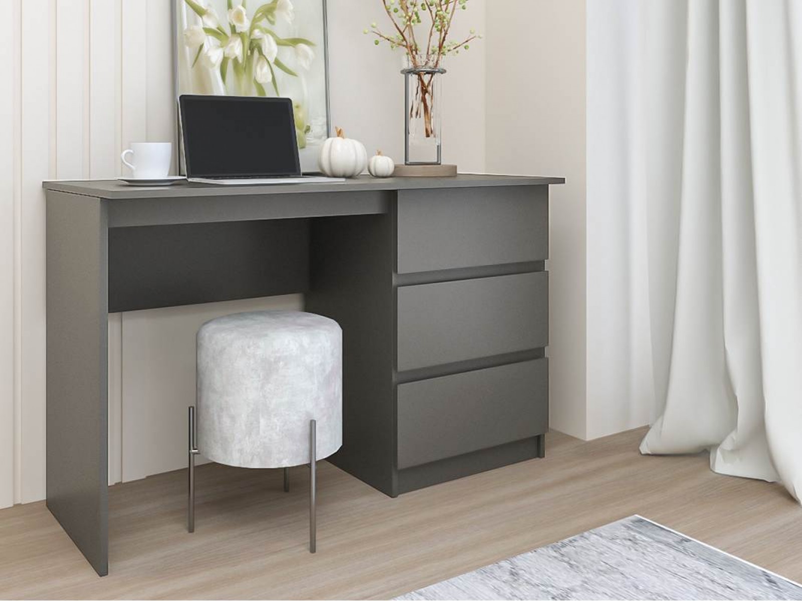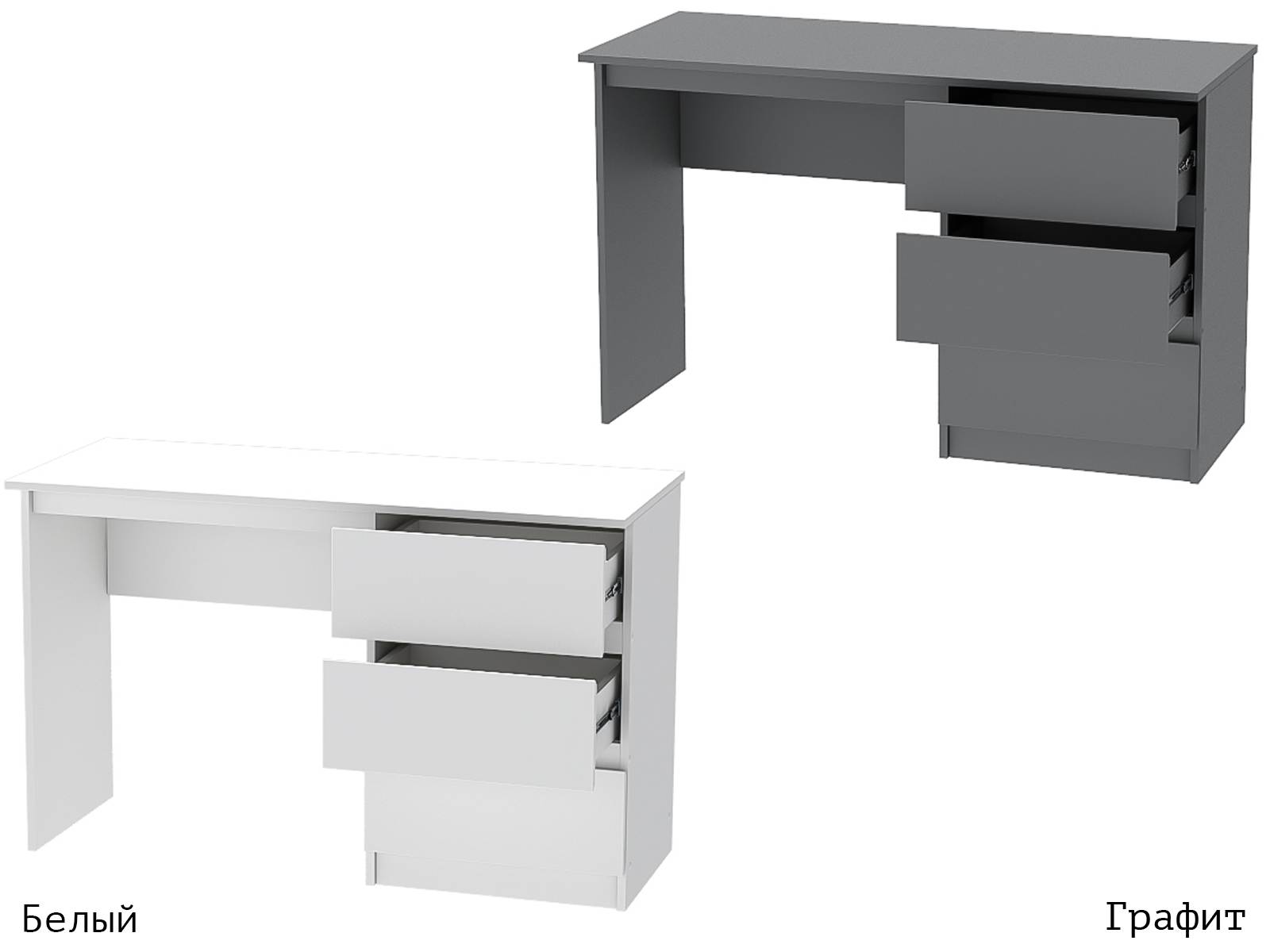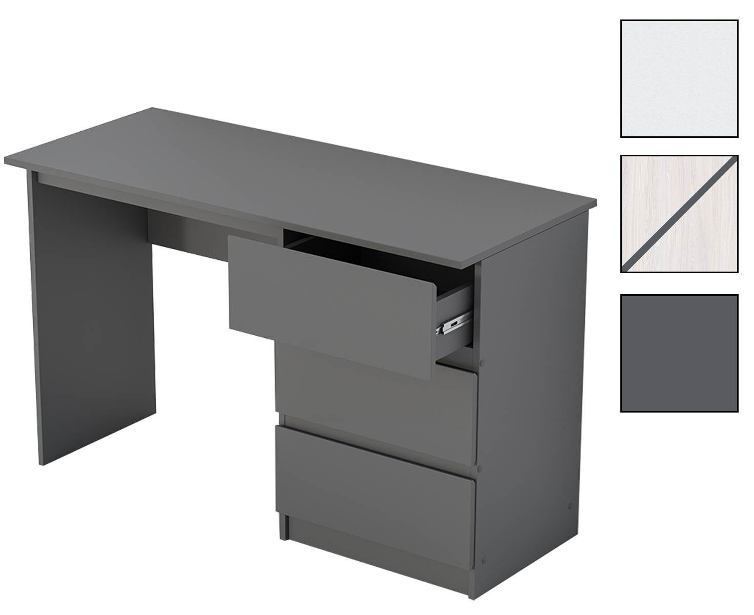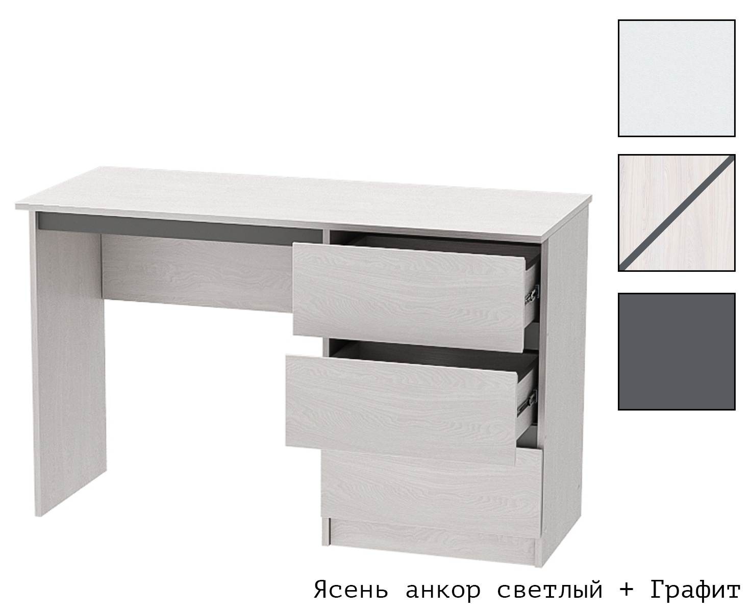Стол с тремя выдвижными ящиками - классическая модель, без надстроек, с достаточно широкой рабочей поверхностью.