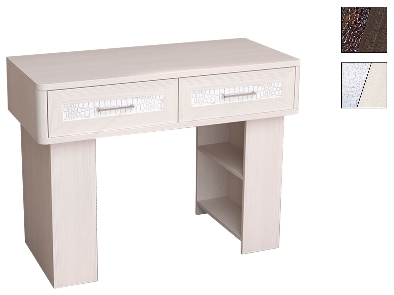 Туалетный столик является неотъемлемым предметом любой спальни для женщины. Он служит прекрасным местом хранения косметики, парфюмерии, украшений и прочих вещей, помогающих в ежедневном приведении внешнего вида в порядок. Оборудован стол двумя выдвижными ящиками и небольшими открытыми нишами внутри ножек. Шариковые направляющие полного выдвижения